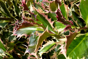Odmiany męskie Ilex aquifolium: 'Elegantissima', 'Ferox', 'Ferox Aurea', 'Ferox Argentea', 'Myrtifolia Aurea Maculata'.