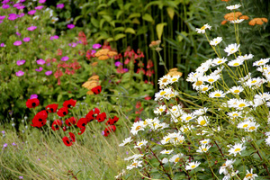 Z dwuletnich naparstnice (Digitalis) i dziewanny (Verbascum) oraz malwy (Alcea), a z jednorocznych eszolcje, czyli maczki kalifornijskie.