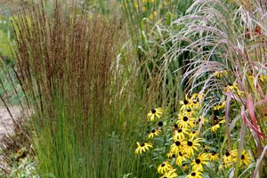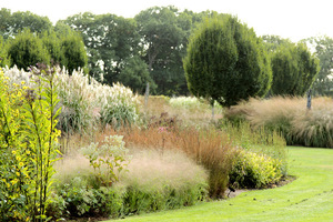 - Duże rabaty, tło nasadzeń: wysokie miskanty, trzcinnik.