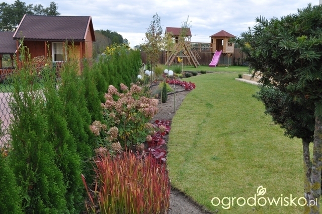 a cyprysy powędrowały do łezki i udają żólte bukszpany , dosadziłam im żurawki, chociaz w projekcie mam tam begonie... ale miałam nadmiar żurawek to je upchnełam tutaj, myślę że będzie ok. Na rabacie brakuje jeszcze traw i kamyczka... reszta w przyszłym roku tzn serby i cisowy ekran