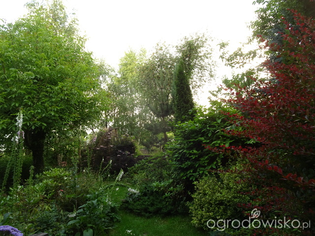 Orzech już całkiem liście zgubił, ale o dziwo czereśnia i inne drzewka i krzaczki jeszcze zielone.