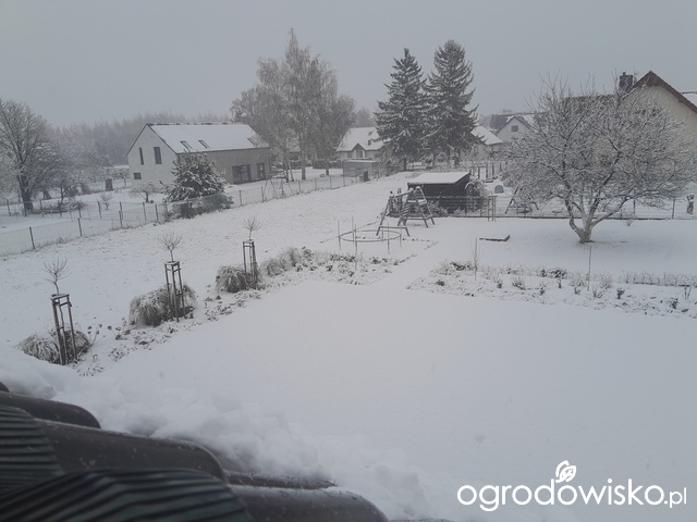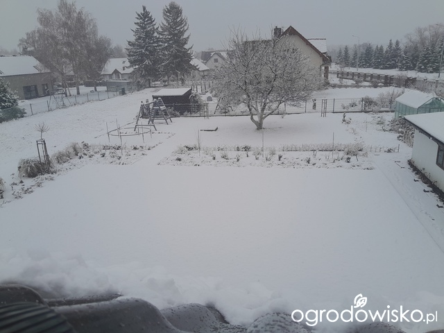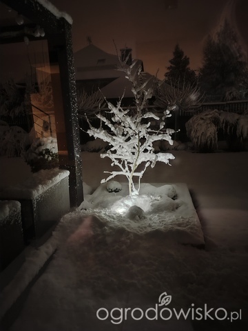 Doczekałam się śniegu, w nocy w świetle było bajkowo (z okna) zdjęcie nie oddaje atmosfery: