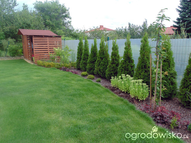 mało chyba widać, jest gęsto. Ta brzozowa rabata od góry przy ogrodzeniu: