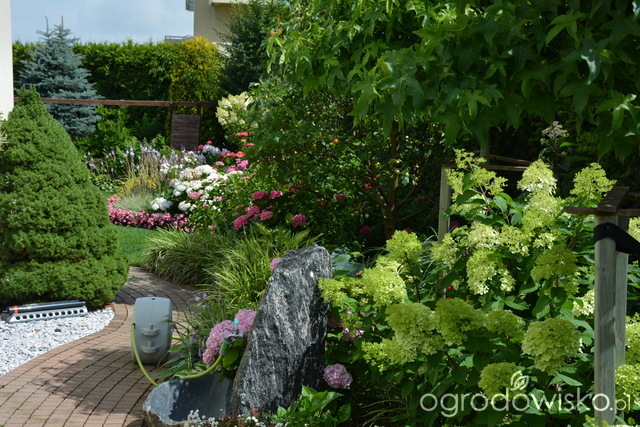Tu widać z drugiej strony posadzone anabelki, a między nimi są posadzone białe lilie. Tworzyły świetny duecik.