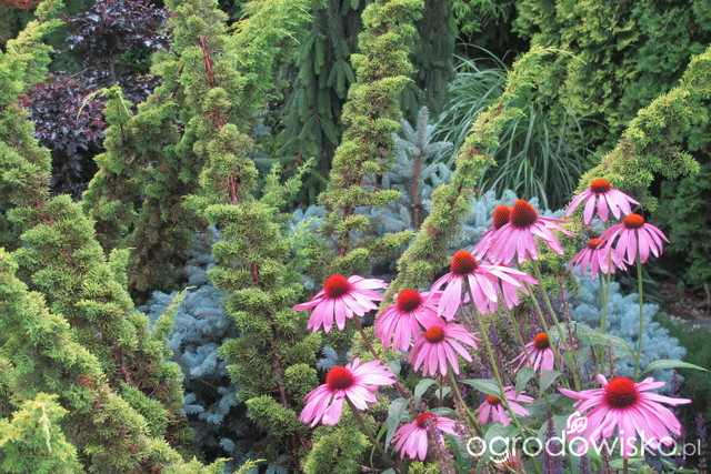 ale połączenie kolumnowy żółty i pierzasty bez z ciemnozieloną kulą cisową moim zdaniem to byłaby bomba. Do tego była mowa o hortensjach limelight - one też by świetnie pasowały. I wtedy miskanty nie musiałyby bezpośrednio sąsiadować z bzem. O tak: