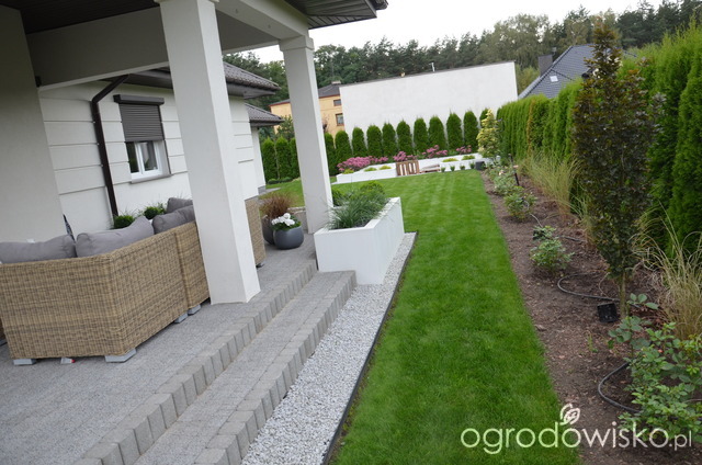 Ta rabata z rysunku i z pierwszego zdjęcia to z przodu. Zdjęcie ze schodów domu. Na ustawienie i wymiary nie miałam wpływu, taki był projekt oczyszczalni zgodny z wymogami co do odległości.