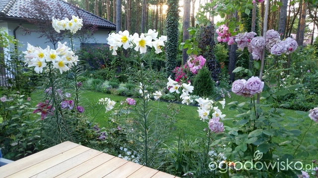 Liliowców za mało, nie ma miejsca. Lilie zjadły mi nornice chyba, bo sadziłam dużo więcej. Trudno. Lubie ich zapach i mieszczą mi się na rabatach jeszcze aczkolwiek zrobiłam błąd sadząc je na wiosnę kiedy nic nie rosło, i są za daleko do wąchania