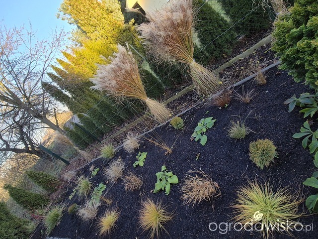 Jakoś udało mi się powiązać trawy w ozdobnym przed śniegiem, niestety w rabatach na części warzywnej już nie!