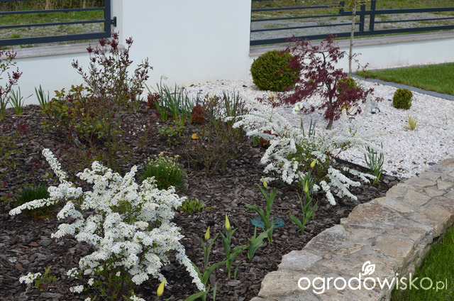 Rabata z drugiej strony to całkowita porażka Myślę o trzmielinie na pniu posadzone żurawkami Swett tea lub begonie .
