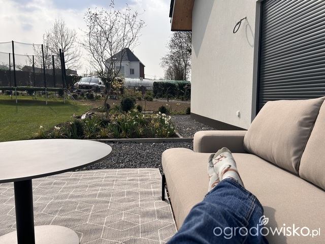Kolejny dzien, kolejna fajna rzecz w ogrodzie. Głównie to kanapa,ale i stolik i dywan też fajne. Kanapa wygodna.... trochę się bałam bo kupowałam w ciemno jako że tego modelu nie było w sklepie żeby przetesować. No i stabilna.