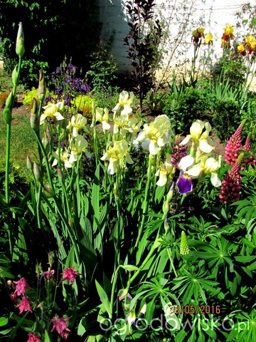 Ławka betonowa ma ściągać wzrok i właśnie dlatego będzie biała. To dość ciemny zakątek i chcę go rozjaśnić. Może kiedyś tam będzie jaśniej, jak rośliny się rozrosną. To biały zakątek, wszystko co tam rośnie kwitnie na biało