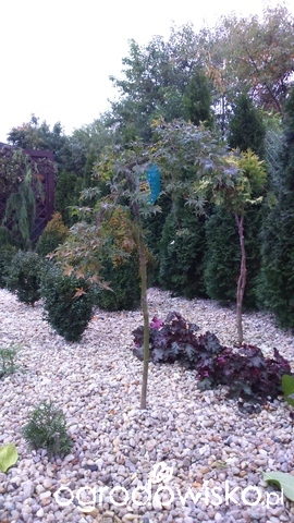 Bo można by iść w stronę mniej formalnych nasadzeń i strzelić tam niewielkiego klona (Ginnala, ussyryjski, ściętolistny) lub naturalnie prowadzoną śliwę wiśniową (nieszczepioną). Byłoby to takie naturalne przejście z przedogródka do prywatnej części ogrodu. Nasadzenia pod drzewkiem nawiązywały częściowo do frontu, a częściowo do tyłu.