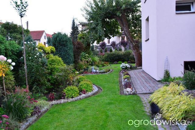 Gazony przy placyku zamieniłabym na ławeczkę i pociągnęła aż do ścieżki.