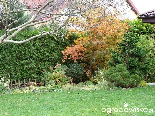 Piękny zielony ogród, który jesienią zmienia kolorki.