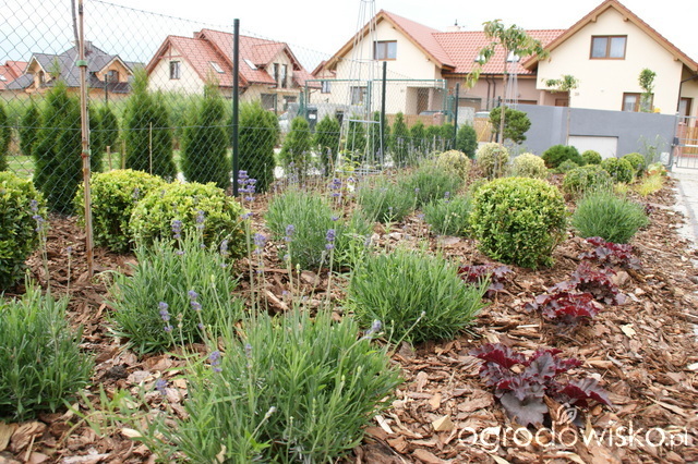 Te mniejsze tak od szablonu. ALe za dużo ich jest bo reszty roślin jescze nie widać i bardzo mnie to denerwuje... Kiedy urosną traway, podrośnie lawenda, powojniki zakwitną, rozrosną się miskanty i zakwitną róże? A na razie widac tylko bukszpany i korę..... Przyjmniej nie widać chawstów..