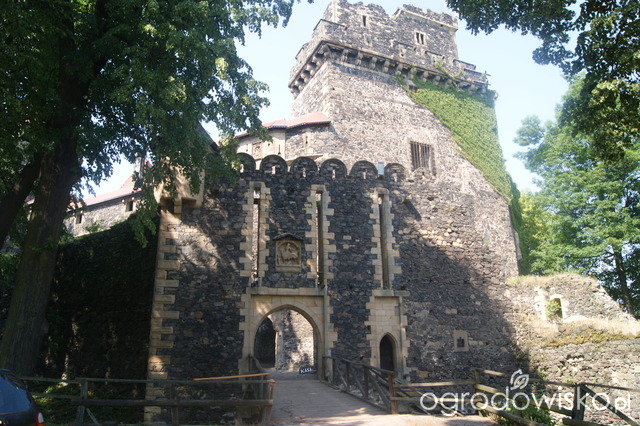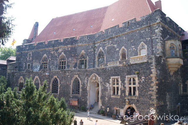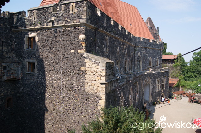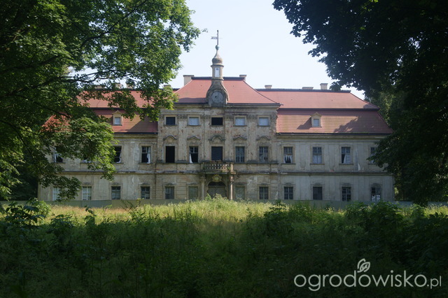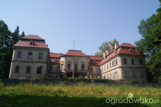 Zamek Grodziec wznosi się na wzgórzu - widać go z daleka. Jednak u jego podnóża też znajdziemy coś ciekawego. A mianowicie pałac. Niestety teren jest ogrodzony, niedostępny do zwiedzania. Ale można podejść bliżej żeby przekonać się, że niegdyś było to piękne, duże i bogate zabudowanie. Mam nadzieję, że podobnie jak z innymi pałacami w tym terenie i ten znajdzie właściciela, który włoży w remont nie tylko, niestety duże, pieniądze ale i serce. I za kilka lat będę porównywać fotografie, dziwiąc się jak to kiedyś wyglądało.