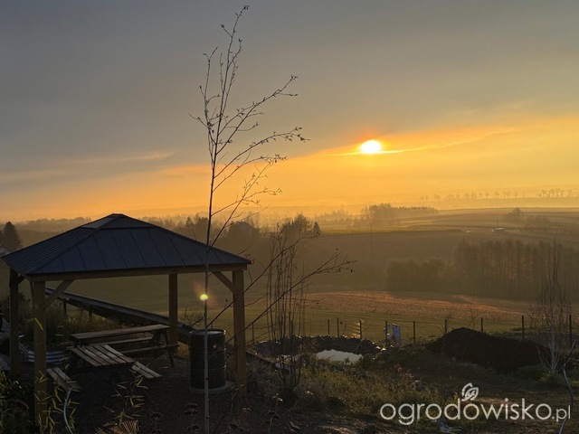 Szopka i wybieg dla kur. Trawy się przyjęły
