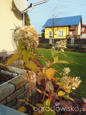 hortensje trzymają się dzielnie - widziałam miejsca gdzie wycięto brązowe kwiatostany hortek strasznie zubażając krajobraz