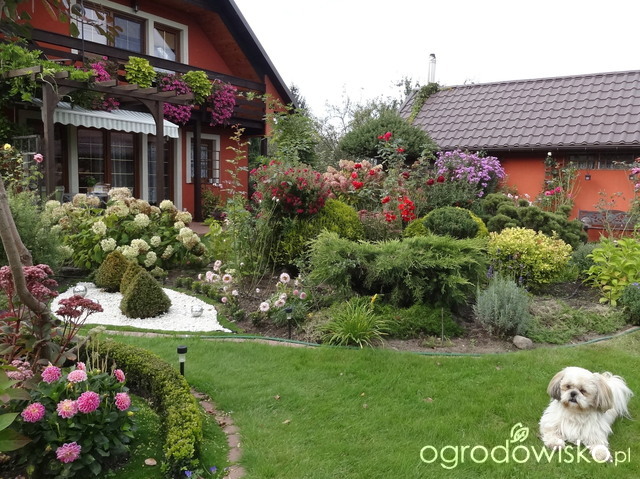 A ogród, no cóż słabiutko. Trawy mi chyba pousychały wszystkie, conicę szlag trafił i muszę myśleć nad zamiennikiem, trawnika nie mam - same chwasty, chwastnica i jakaś mi się wdała trawa rozłogowa, kret imprezuje, orzech sąsiada zasypał pół działki. Miłorząb nawet nie wiem czy się przebarwił, czy kwitły wrzosy