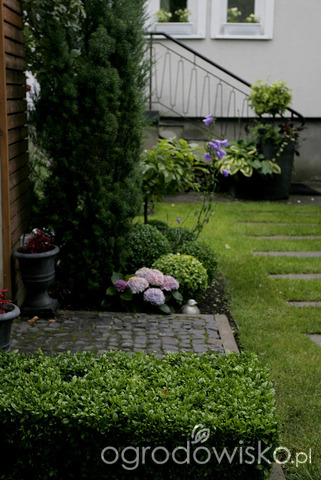 zaznaczyłam układ rabat, trawnik, warzywniak + sad. Na trawniku linią szarą przerywaną pokazałam ewentualne "ścieżki" - drogi przejścia - drogi podziwiania rabat