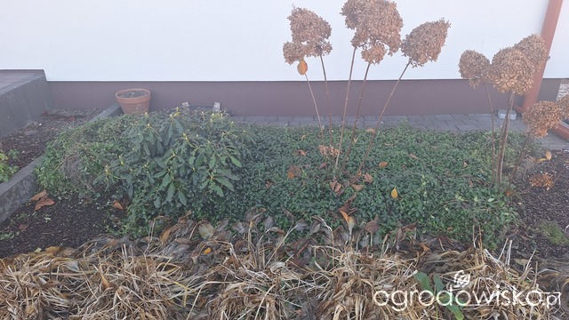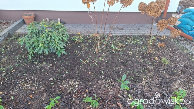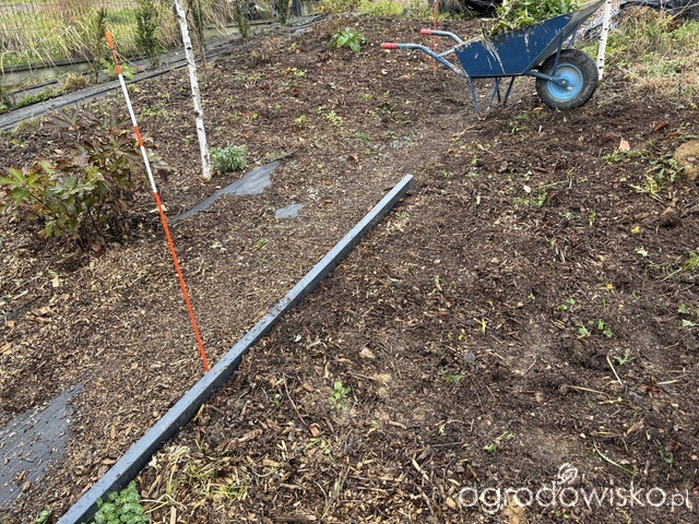 Jednak dziki dobrały się do moich miskantów zadołowanych na przedpłociu u sąsiadów, dziś trochę przymusowa wycieczka do domku szwagra na Warmii, M stwierdził, że jak ma kopać kolejny dół, a wiosną znowu je wykopywać to już woli posadzić w docelowe miejsca, także dziś moje miśki znalazły swoje nowe miejsce na ziemi