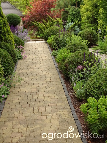 Między tujami a krawędzią trawnika wykrojona została rabata. Wystawa północno-wschodnia narzucała wybór roślin znoszących cień i półcień.
