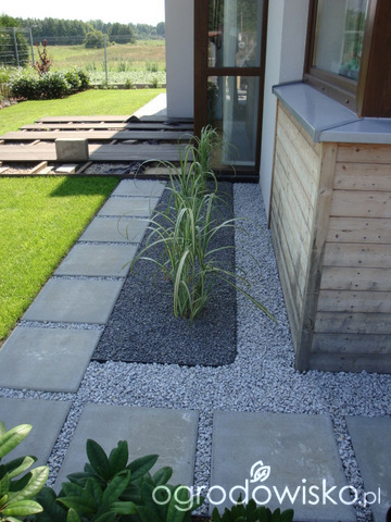To skromny ogródek, małe roślinki i mało mam zdjęć. Proste linie. Trawy, hortensje, choina kanadyjska. Front jest ładny, ale nie mam zdjęć.