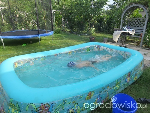 Ten basen nie jest taki duży, średnica chyba 4m. Przy murkach musi być trochę miejsca na przejście.