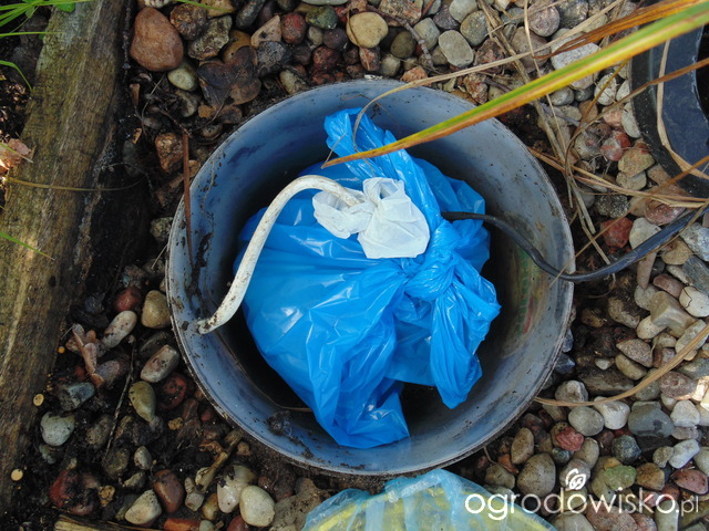 Po podłączeniu wszystko włożyłam do woreczka, zataśmowałam i obwiązałam jeszcze raz reklamówką, po czym przykryłam pokrywką wiaderko.