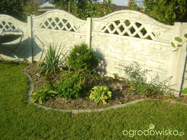 Zdjęcie jest tylko jak tu jest teraz wszystko tytonie,begonie,żeniszki + doniczki z hortensjami wielki miskant ,któremu też muszę znaleźć docelowe miejsce to nie wiem czy coś zobaczysz Zaraz poszukam strony z tą rabatą nr 1 ,nr 2 to jest miejsce gdzie jest rh od Ciebie,a rabata 3 to ta z wyciętym "kołem" muszę je poprawić .