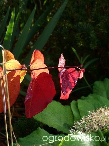 Na fotce na pierwszym planie widzę liście tarczownicy, nad nią w tle, coś się żółci, o tej porze roku? Co to jest?