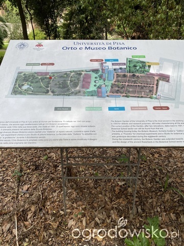 Najstarszy, uniwersytecki ogród botaniczny w Europie, założony w 1543 w Pisie, gdzie prowadzono badania nad roślinami. Logo instytucji nawiązuje do stylizowanego wizerunku szachownicy cesarskiej- symbolu nauki botanicznej i bogactwa roślinnego. Ogród maleńki, ciekawie położony (jakie inne miejsce może poszczycić się takim pejzażem zapożyczonym?), trzy tysiące uprawianych roślin, z różnych kontynentów.