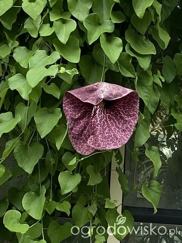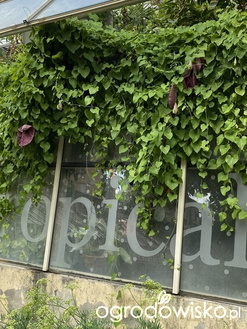 Aristolochia gigantea, kokornak olbrzymi, robi wrażenie, ale brzydko pachnie.