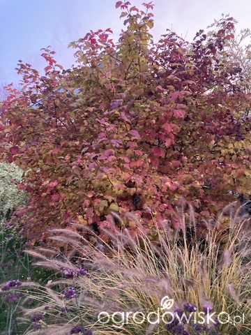 Co to za krzew/niskie drzewko co ma jeszcze tyle liści i chyba trzy mnie u podstawy? Te spore drzewa w tle to już u sąsiada?