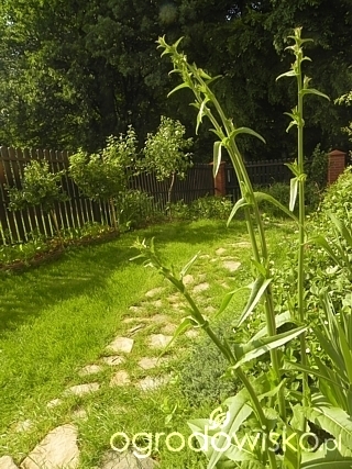 Ja mieszkam w swoim nowym domu od dwóch miesięcy i próbuję doprowadzić do względnego porządku nasz ogród. Nie jest duży, bo tylko 0,5 ara, ale dla nas wystarczający. Cóż, jak się nie ma co się lubi, to się lubi, co się ma !!!!". Pierwsze nasadzenia to dzieło mojego taty, który w moim rodzinnym domu zajmował ( i nadal zajmuje) tymi rzeczami. Niestety czasem się zapomina, że to mój dom i nie wszystko też mi się podoba. Posadził wiele rośli, "jak leci - na bogato". Teraz to za bardzo nie ma składu i ładu więc powolutku będa to zmieniac po swojemu. Na znacznej powierzni mamy trawę, pod płotem pas z roślinami.