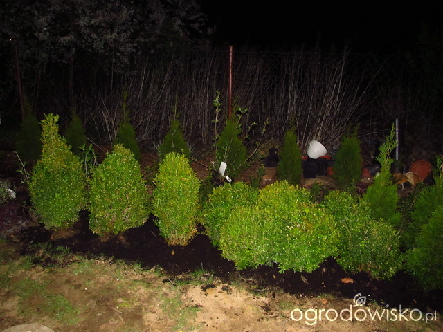 Dalej muszę zagospodarować ten ciąg od bramy do rogu. Tutaj chciałabym mieć: hortensje limeligt, bukszpany, kule na pniu, klon palmowy. Tylko jak to poukładać w całość.