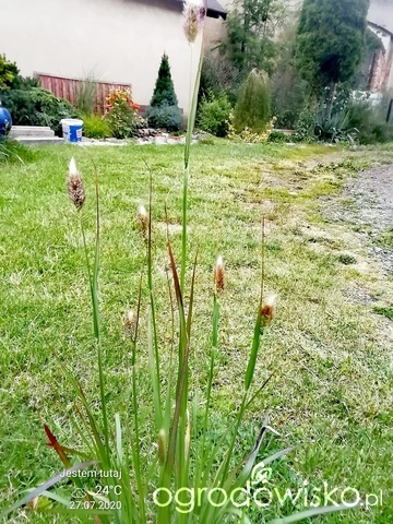 Gosiu, przed ławeczką rozplenica, która nigdy nie kwitła Na etykietce było napisane, że Moudry. Ale ona mi z liści nawet na nią nie wygląda.