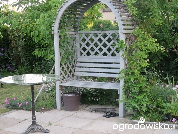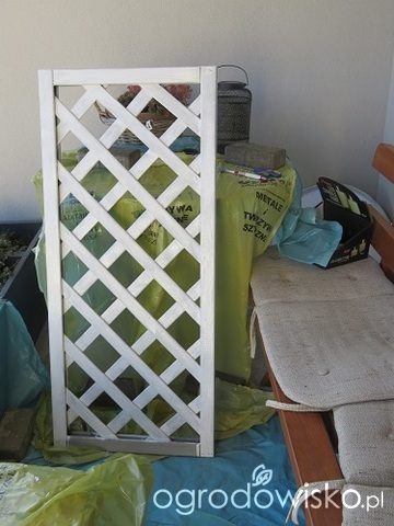 Od wtorku wychodzę na dwór na krótki spacer po ogrodzie i bardzo denerwuje mnie to, że nie mogę nic zrobić w ogrodzie, a pogoda taka cudna. Wczoraj wieczorem intensywnie myślałam, co bym jednak mogła robić na dworze. Rana pooperacyjna mnie nie boli, mogę stać i siedzieć. Oczywiście nie mogę dźwigać nic ciężkiego, ani się schylać, czy kucać. Myślałam, myślałam i wymyśliłam. Mogę malować. Poprosiłam męża i przyniósł i jeden element ławeczki z pergolą. Była szara teraz będzie biała. Przygotowałam sobie miejsce do malowania, oczyściłam drewno papierem ściernym, usunęłam kurz z czyszczenia i wzięłam się za malowanie. Na dworze było tak przyjemnie, tak ciepło. Mam nadzieję, że przez całą zimę pomaluję całą ławeczkę, że będzie na tyle okienek pogodowych, że dam radę. Tą farbą można malować w temperaturze +5 +25 stopni. Potem przycięłam jeszcze hakuro w przedogródku, żeby je śnieg nie połamał.