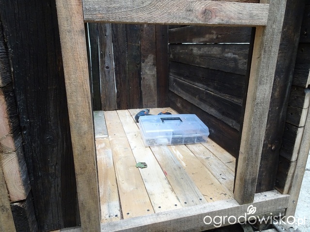 a tu drzwi, otwór po lewej to wejście dla drobiu, otwór na wprost pod drzwiczki do podbierania jajek
