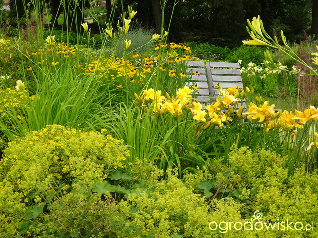 "Zielone" zostały maliny/już ścięte,u góry fotki/ i grządka z jeżówkami po prawej stronie.