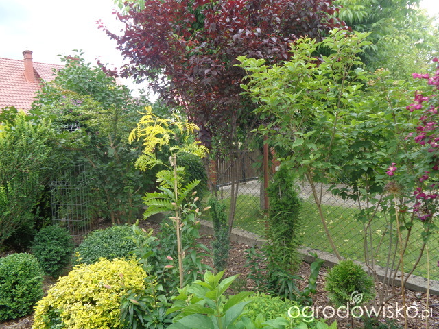 Potrzebuję pomysłu na ten kawałek. Kupiłam dwie pęcherznice Red Baron, dziś dokupię jeszcze dwie i zrobię z niej żywopłot (piszą że sadzić na żywopłot co 70cm). Zastanawiam się tylko co posadzić pod nią. To będzie miejsce dość zacienione no i w przejściu więc nie chcę by wyłaziło za mocno na ścieżkę. Krawężnik będzie zlikwidowany i sypniemy kamień tak jak przy podjeździe. Błagam o podpowiedzi.