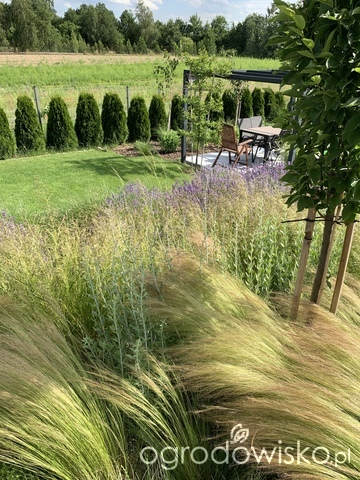 Wiosną muszę przesadzić zza brzóz Gracki, mają za ciemno i się pokładają. Wsadzę drugi rząd kosaćca syberyjskiego. Będzie po przekwitnięciu udawać trawę