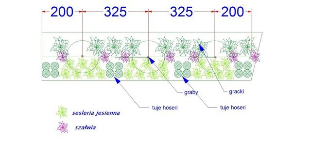 Dodatkowo chciałabym zasłonić "dziurę" pomiędzy dwiema dużymi brzozami, które są widoczne na zdjęciu - wymyśliłam dwa klony drumondi szczepione na pniu.