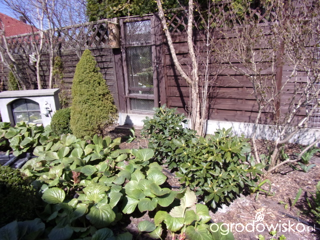 Kasiu, tam będzie raczej spontan. Od strony płotu ciąg dalszy żywopłotu ze świerka serbskiego. Za garażem planujemy schować drewutnię, śmietnik i kompostownik. Do tego jakiś duży krzew, żeby to zasłonić od ulicy (może kalina koralowa). Poza tym śnieguliczki, bodziszki i hosty. Czyli bez fajerwerków.
