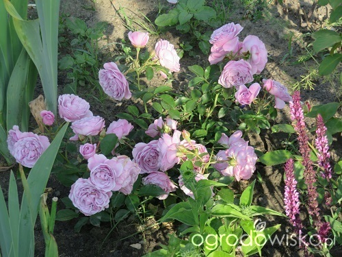 Kwiaty ma w tonacji liliowej z amarantem ?. Była zdrowa, ale kwiaty pod wpływem dużych opadów trochę podgniwały. Kwiatów miała sporo. Krzak ładny, pędy sztywne.
