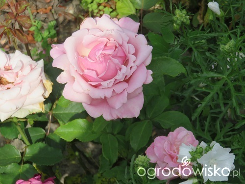 Róża wielkokwiatowa, która ma ciekawe kwiaty. Są w kolorze różowym i są lekko postrzępione. U mnie byłą zdrowa.