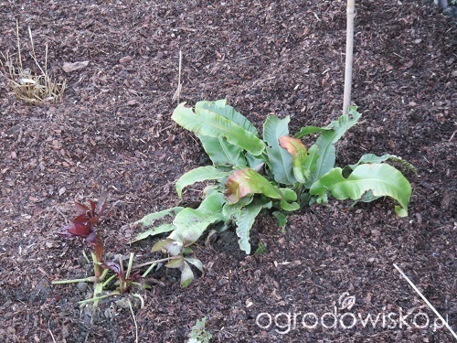 W tamtym roku posadziłam paproć Języcznik zwyczajny i jakież jest moje zdziwienie, że ona prawie nic nie ucierpiała zimą. Jak byłam w Lidlu po wióry rogowe, to widziałam, że ona jest u nich w sprzedaży. Ciemiernikom obcięłam już liście, bo podnoszą się kwiatuszki. Na cieniolubnej świetnie też przezimowała kokorycz niebieska.