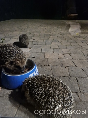 W tym roku ilość jeży w ogrodzie dosłownie mnie zaskoczyła. 2 mioty + kilka dużych okazów. Nie wiem jak sobie radzą ze znajdowaniem jedzenie. Maluchy dokarmiam, żeby miały szansę bezpiecznie przezimować. Duże dokarmiają się same przy kociej misce