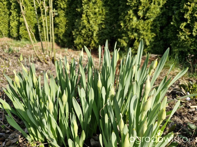 To jest kępa rosnąca pod jabłonką ozdobną, która co roku dostaje porcję obornika. Ilość pąków podobną od lat.