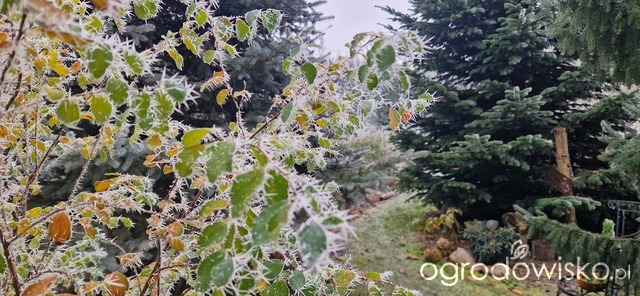A dziś przymrozek, nie wiem ile było w nocy, ale rano około 5 na minusie. Musiało być dużo wiecej, bo rodki całe się poskrecały. Woda w oczku w połowie ścięta, napowietrzacz narazie daje radę. Cały czas z oczka korzystają ptaki